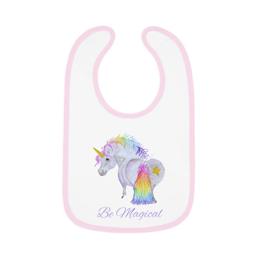 Unicorn 'Be Magical' Baby Bib — Contrast Trim Jersey Bib