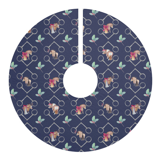 Adorable Ponies Bits and Holly in Navy Christmas Tree Skirt