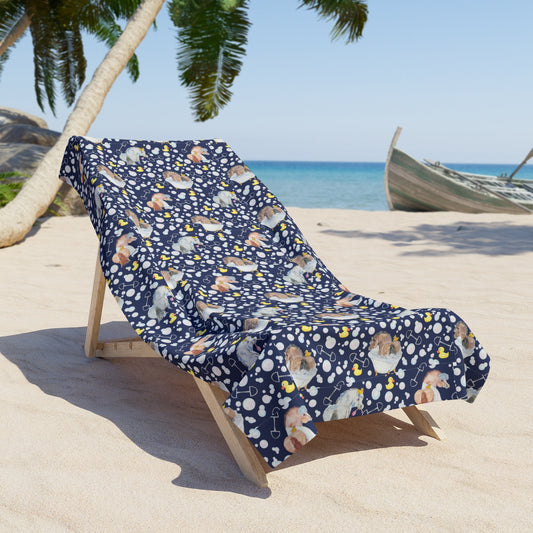 Adorable Ponies Double Bubbles- Navy Beach Towel