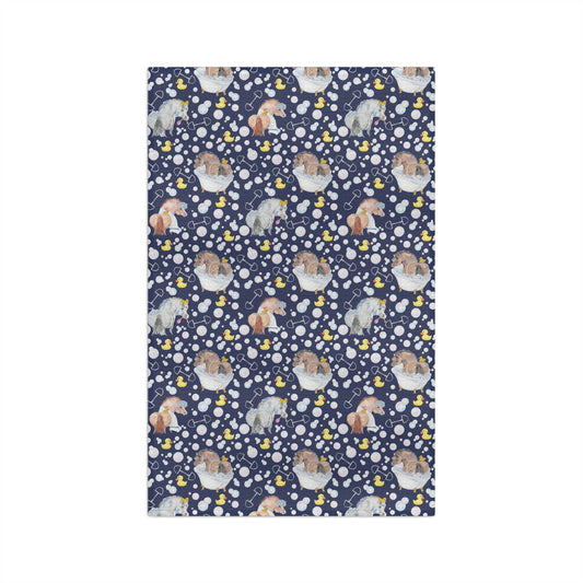 Adorable Ponies Double Bubble in Navy Microfiber Tea Towel