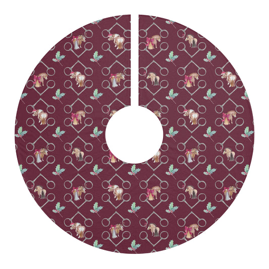 Adorable Ponies Bits and Holly Burgundy Christmas Tree Skirt
