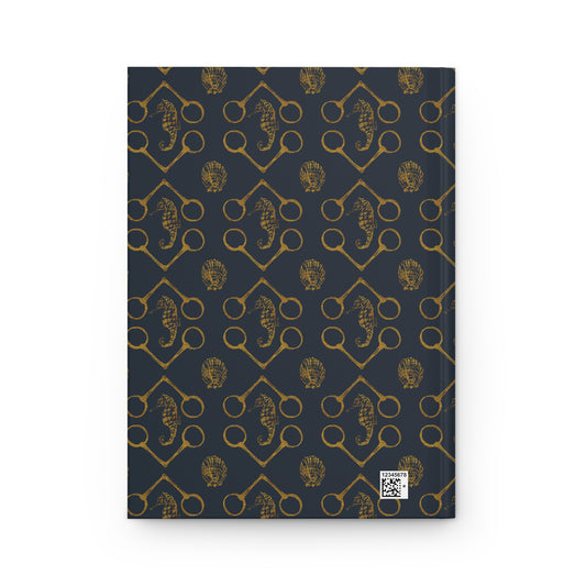 Sea horse and Bits Navy and gold Hardcover Journal Matte