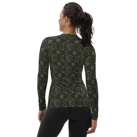 Seahorse and Bits - Olive and Gold Women's Rash Guard
