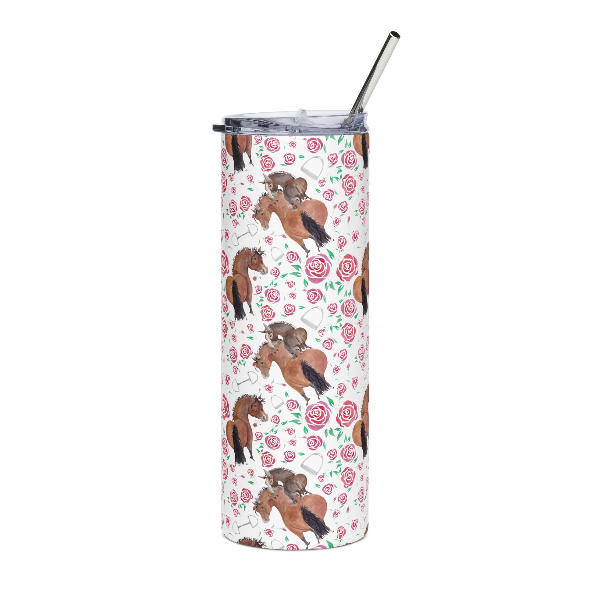 A slim 20 oz stainless steel tumbler that carries warmth, humor, and a love for horses. The glossy-protected wraparound print shows a gentle brown pony in tack and a playful line of text, giving the tumbler personality without bulk. It slips easily into a saddlebag or cup holder, keeps drinks contained with a clear lid and reusable straw, and stands up to daily use thanks to rust-resistant steel and a durable finish. Bring a little stable-side charm to morning coffee, arena rides, or quiet afternoons on the porch.