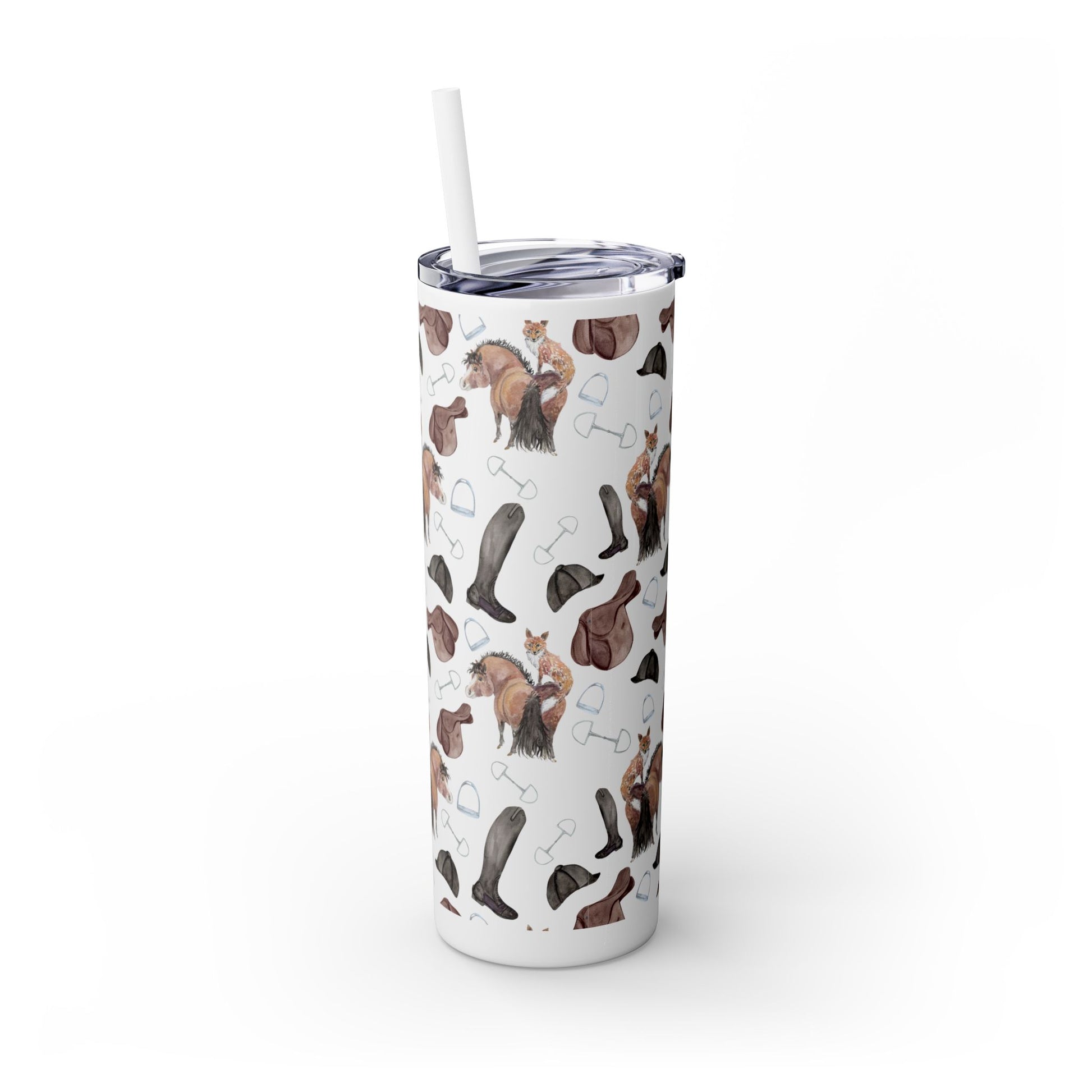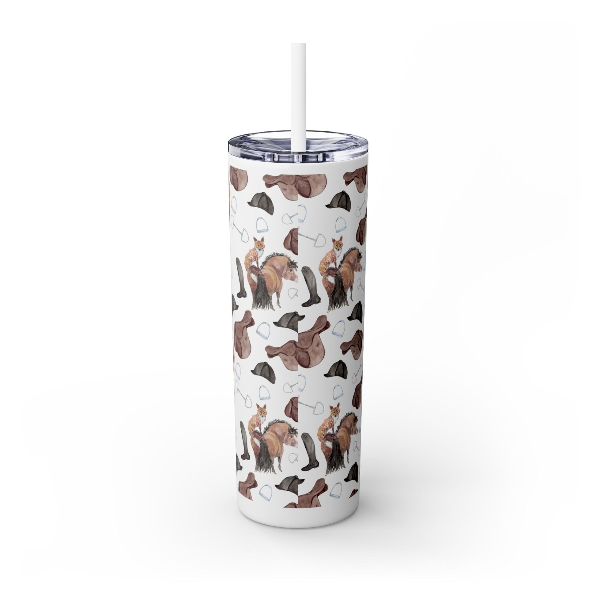 Adorable Fox and pony Print Skinny Tumbler with Straw, 20oz