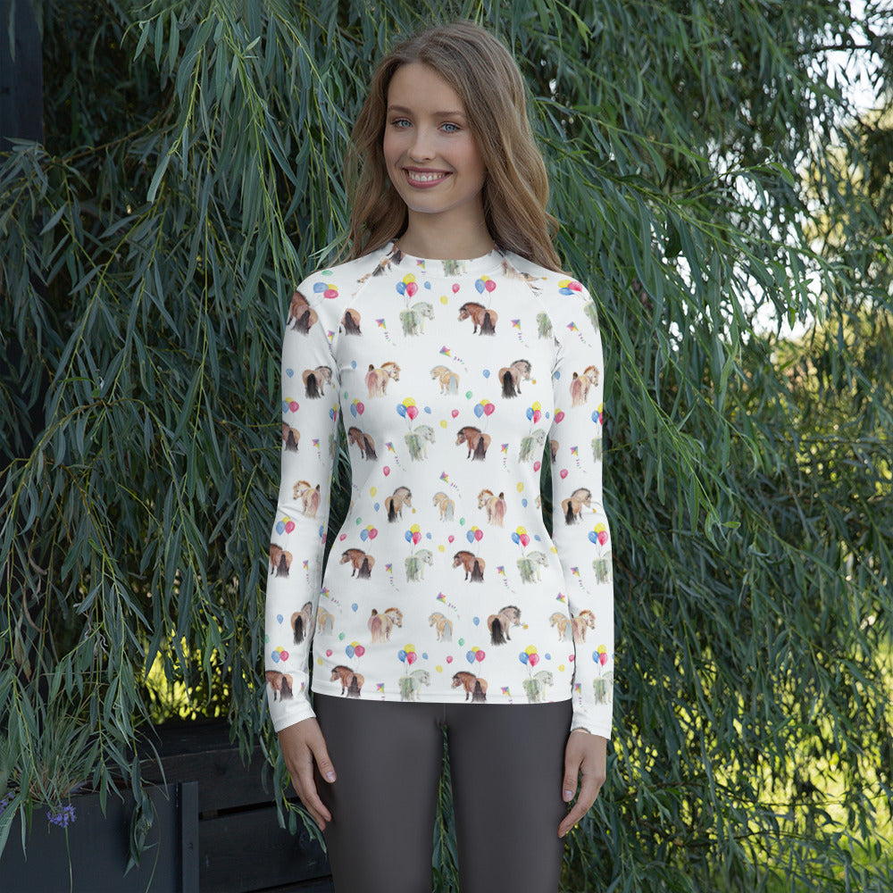 Cricket Killen I am absolutely delighted with my Adorable Ponies Balloons Rash Guard shirt !!!I could not be happier with the fit, style and design ! I absolutely love it !