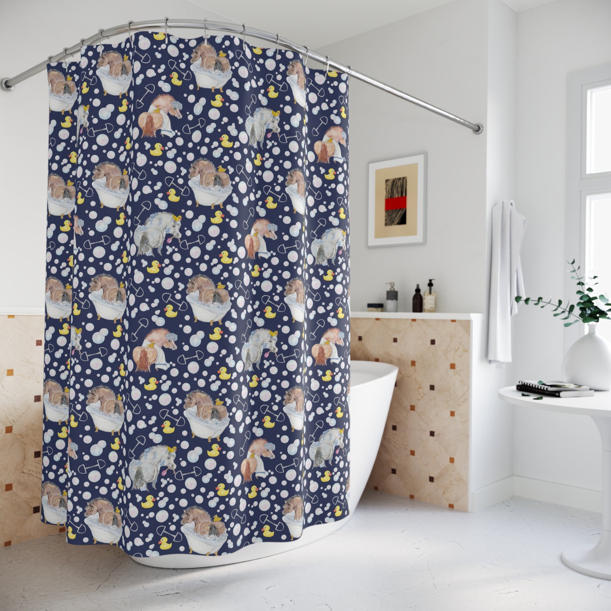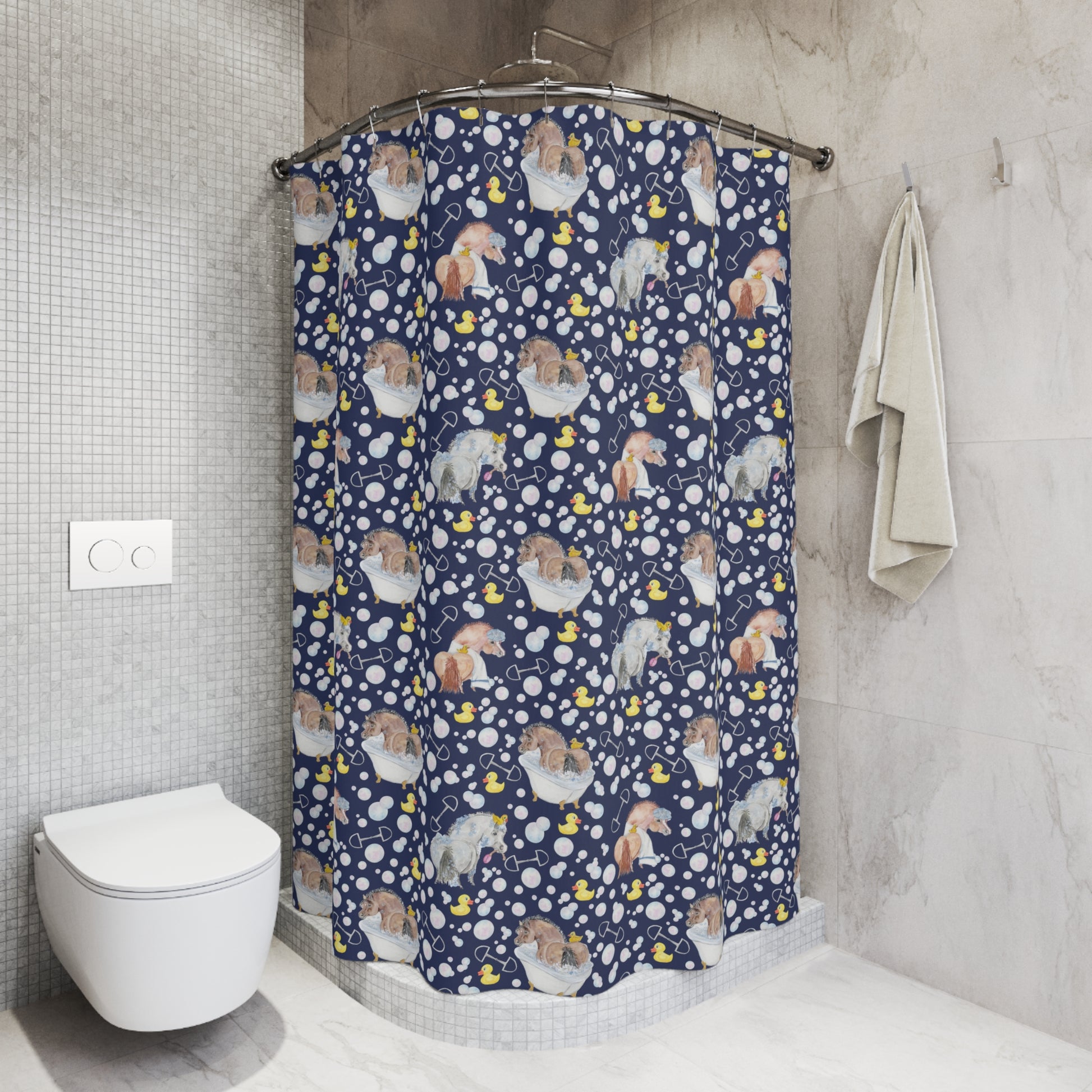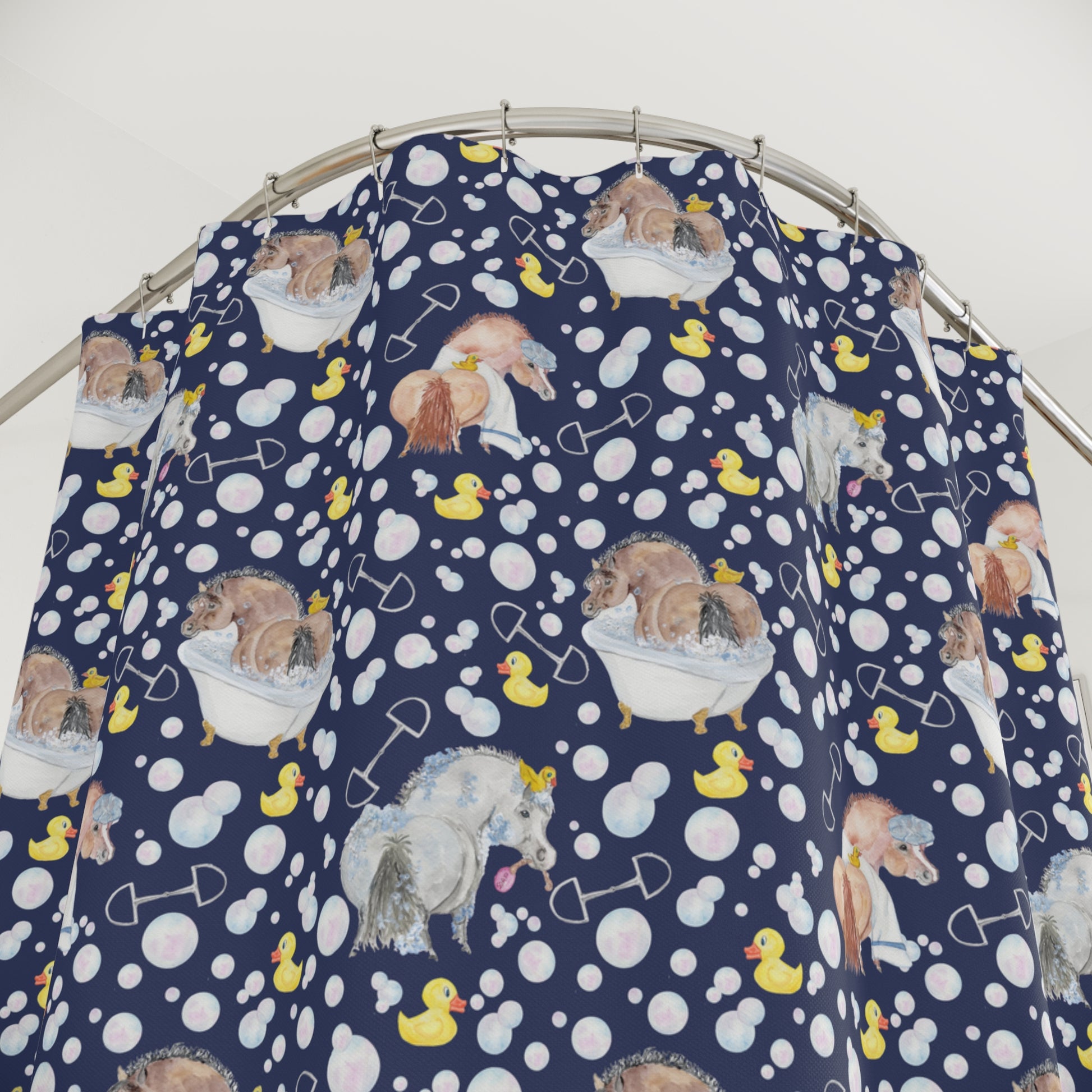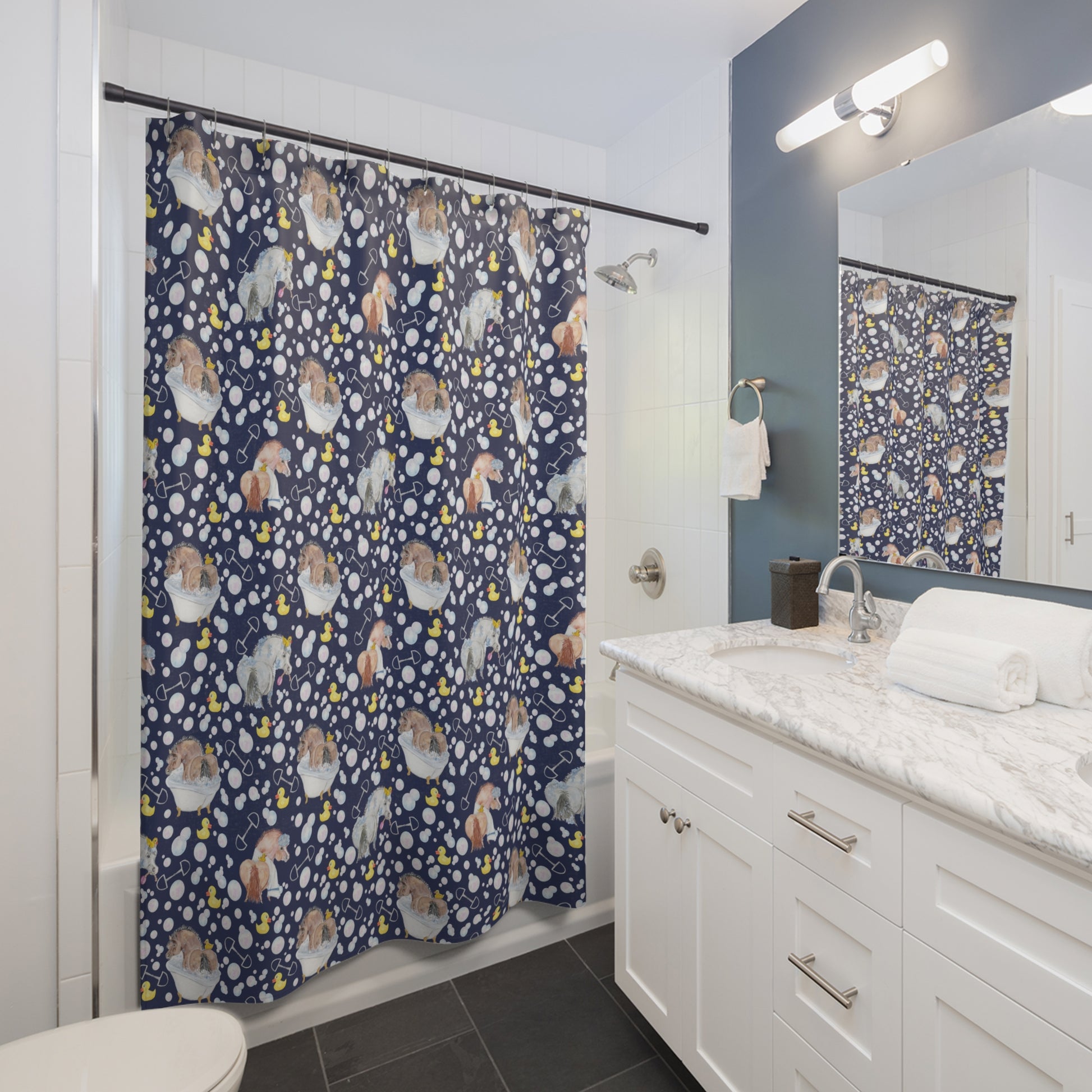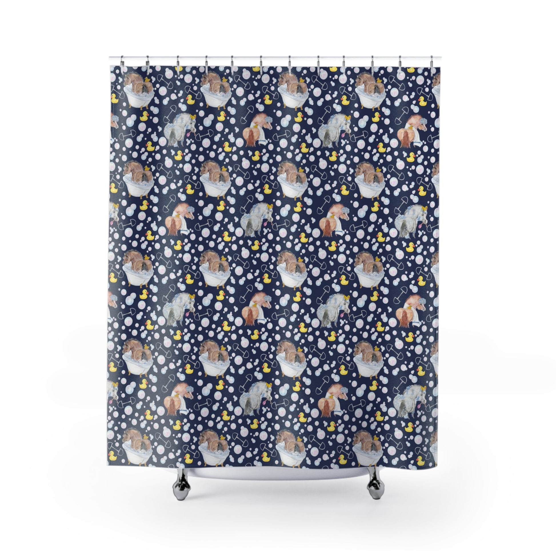 Adorable Ponies Double Bubbles Shower Curtain - Navy