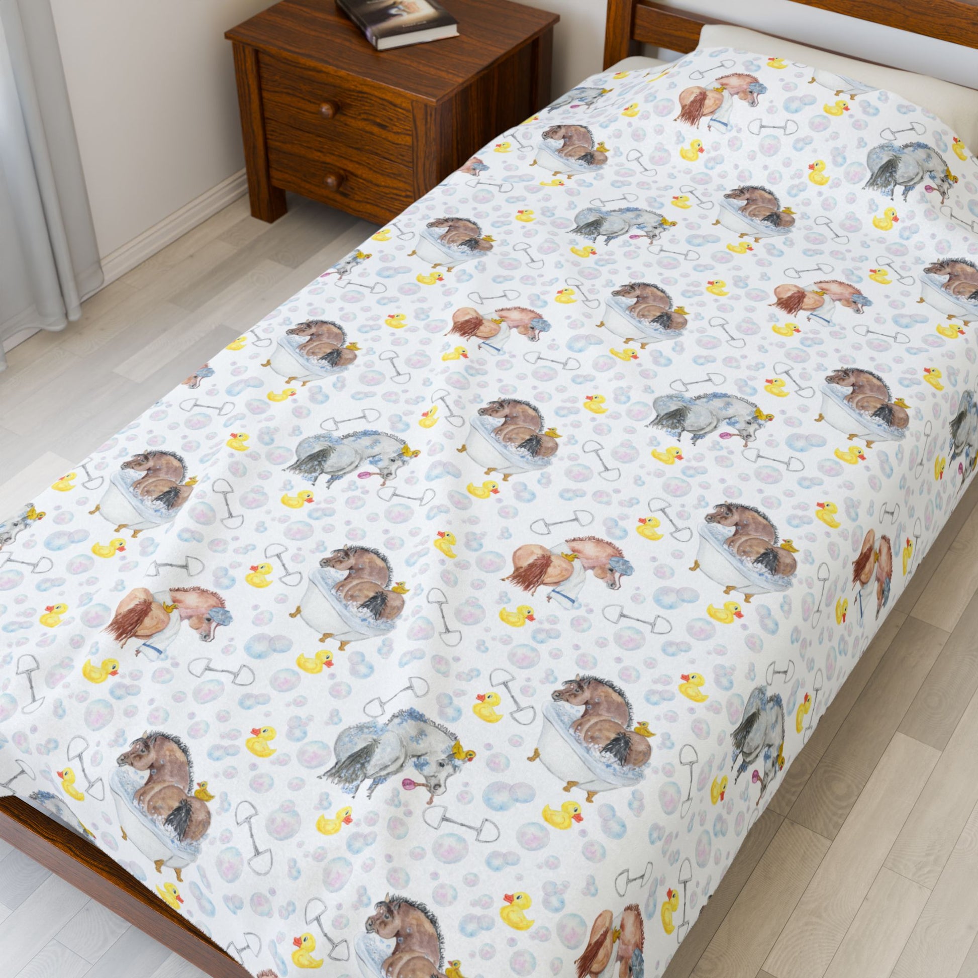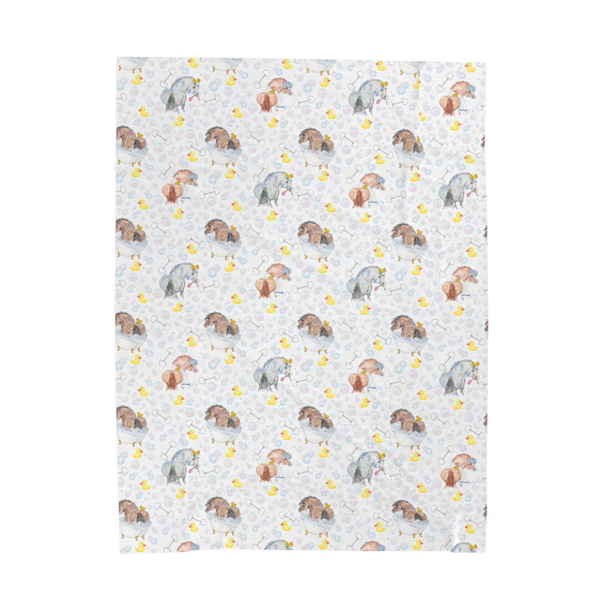 This velveteen plush blanket features adorable little double bubbles , giving off a charming and whimsical vibe. Perfect for horse lovers and those who enjoy equestrian themes, this blanket is ideal for snuggling up on cold nights or adding a pop of color to a room. Great for gifting during the Holidays