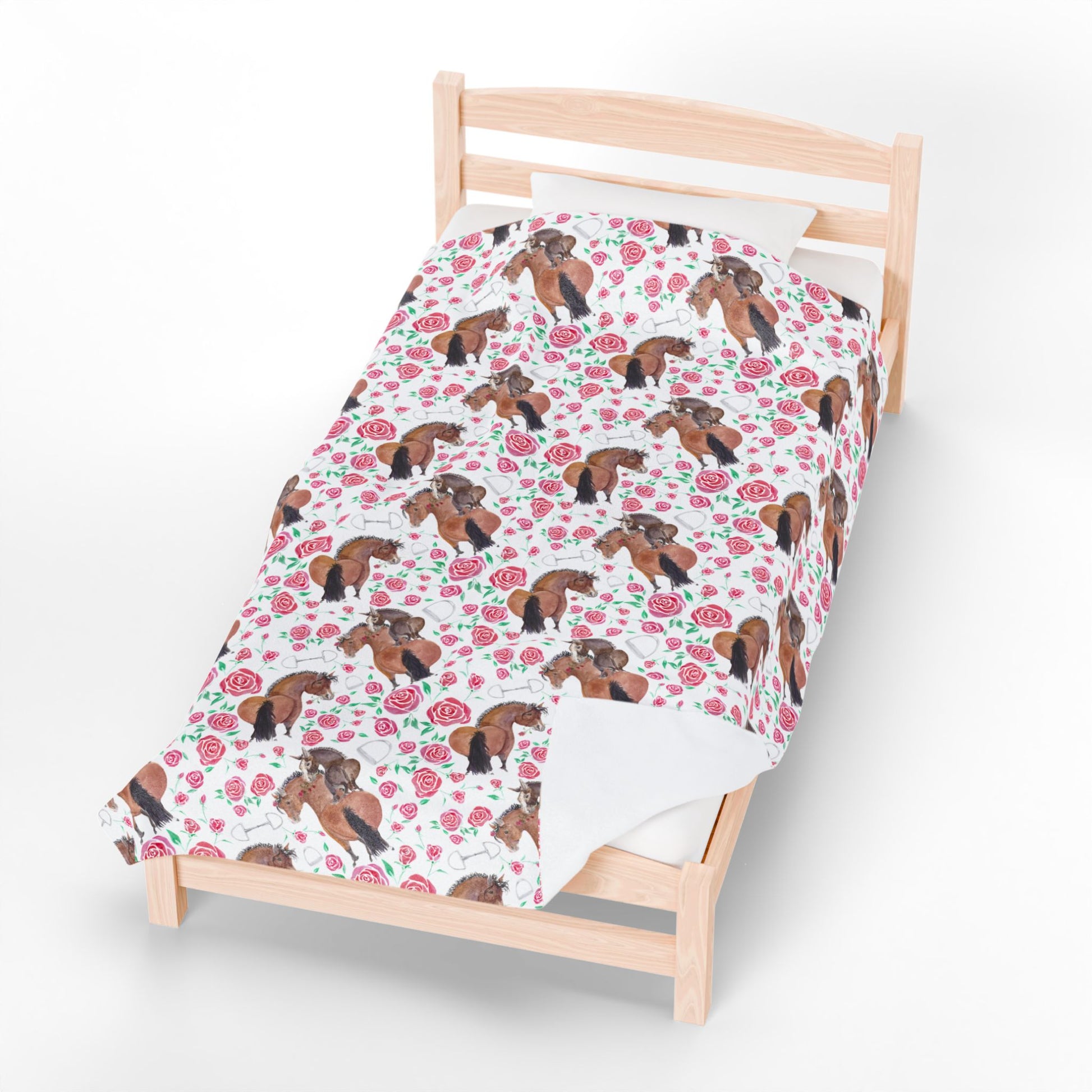 This velveteen plush blanket features adorable little herd , giving off a charming and whimsical vibe. Perfect for horse lovers and those who enjoy equestrian themes, this blanket is ideal for snuggling up on cold nights or adding a pop of color to a room. Great for gifting during the Holidays