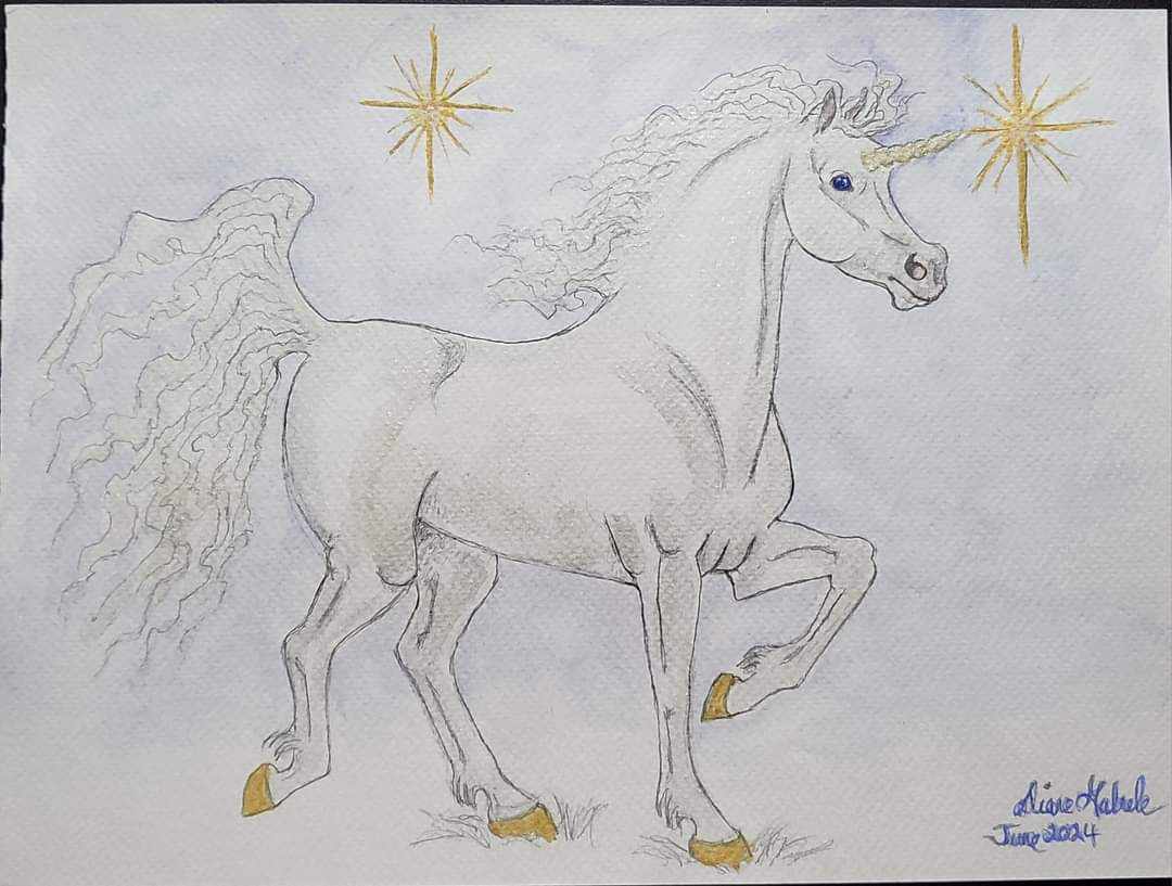 9 x12 watercolor painting of Magical Whimsical Unicorns