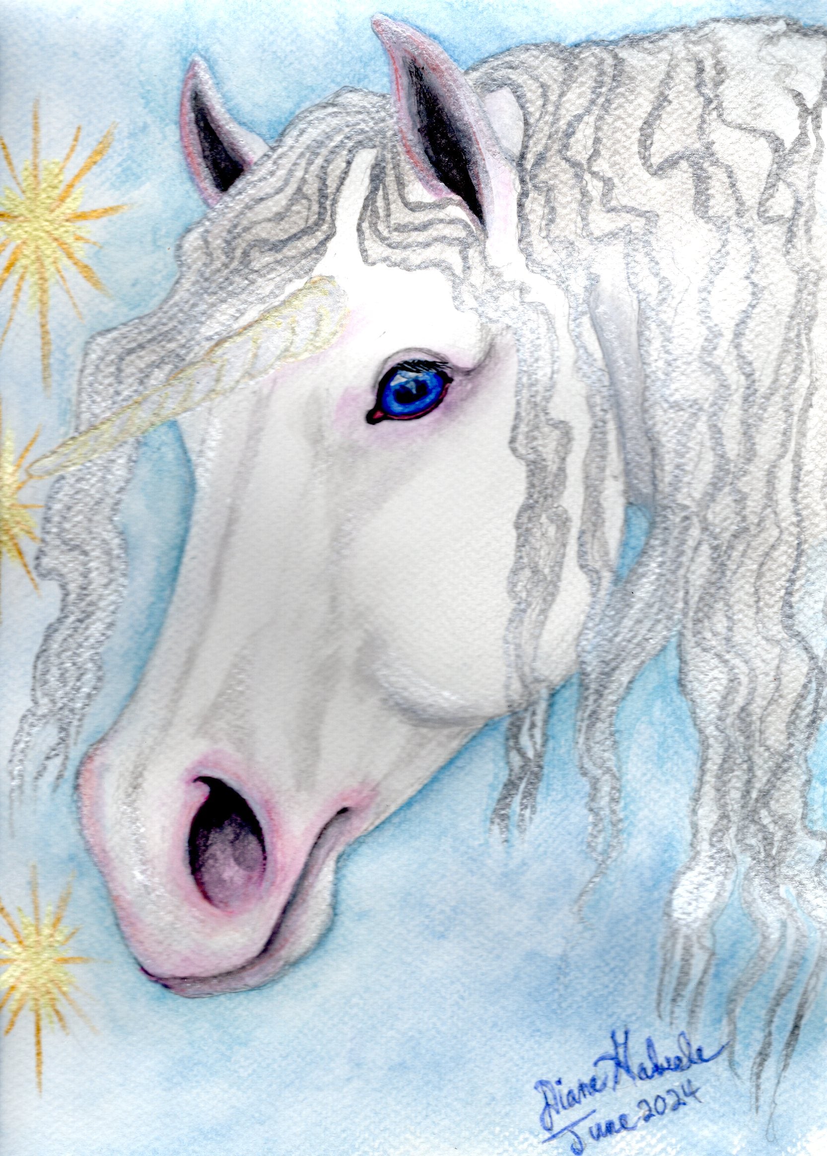 9 x12 watercolor painting of Magical Whimsical Unicorns