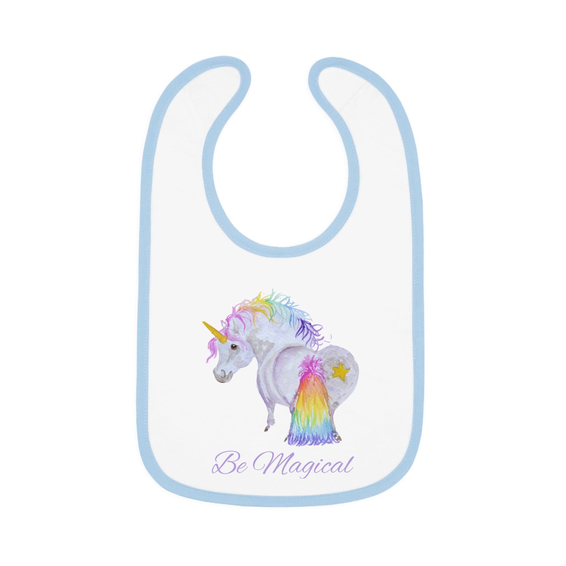 Unicorn 'Be Magical' Baby Bib — Contrast Trim Jersey Bib