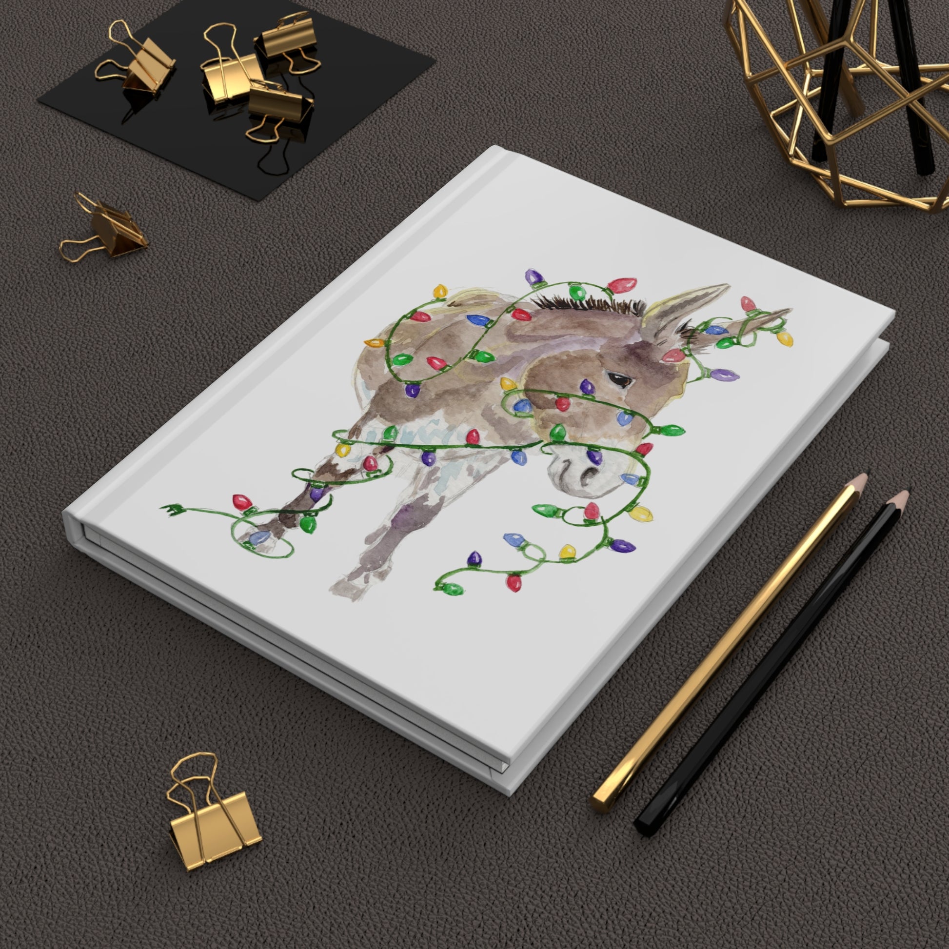 This charming lined notebook features You Light Up My Christmas, my original watercolor of a sweet, slightly stubborn donkey wrapped in colorful Christmas lights. With his curious expression and twinkling glow, he brings a touch of cozy farm humor to every page.