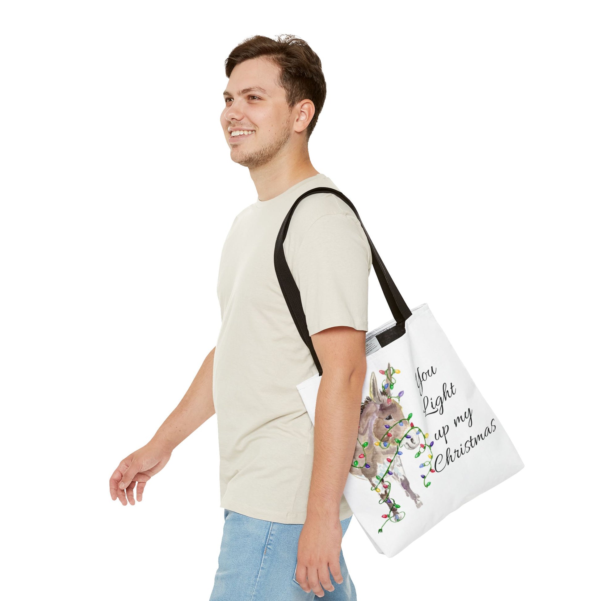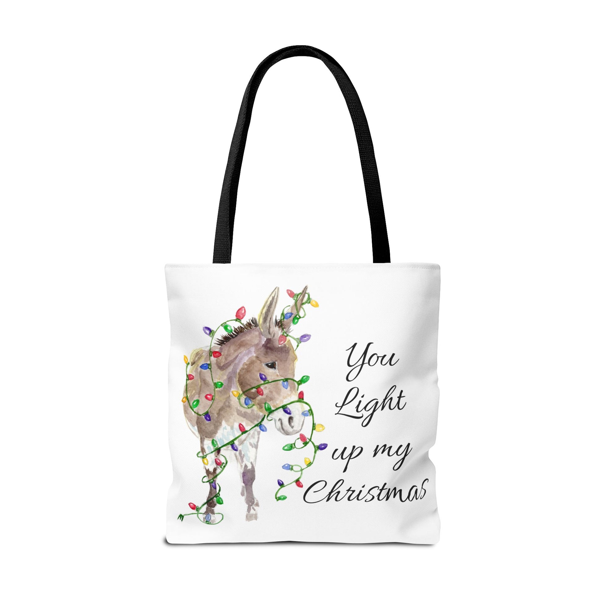 You Light Up My Christmas — Donkey Watercolor Tote Bag